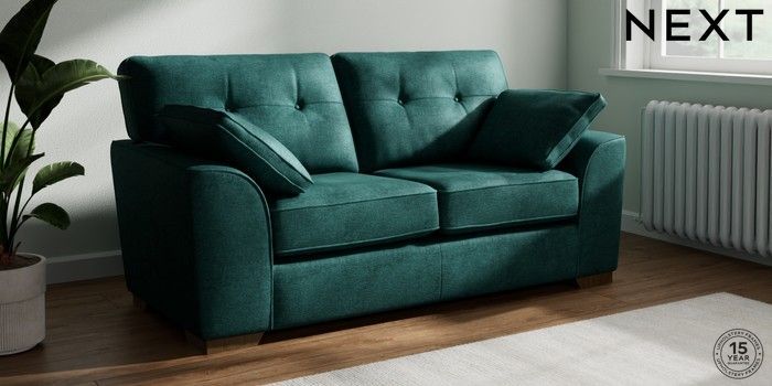 7.2.10 Stamford Buttoned Back 2 Seater Sofa Plush Chenille Dark Teal Green Large Square Angle - Mid | Made Click here to use our website with more accessibility support, for example screen readers
