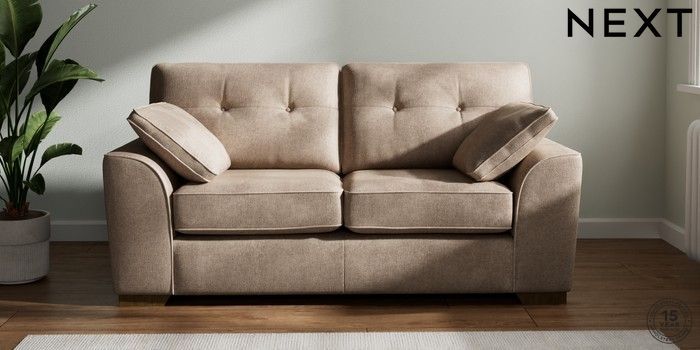 7.2.10 Stamford Buttoned Back 2 Seater Sofa Plush Chenille Mid Natural Large Square Angle - Mid | Made Click here to use our website with more accessibility support, for example screen readers