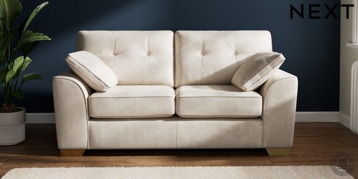 7.2.10 Stamford Buttoned Back 2 Seater Sofa Plush Chenille Oyster Large Square Angle - Brushed Brass | Made Click here to use our website with more accessibility support, for example screen readers