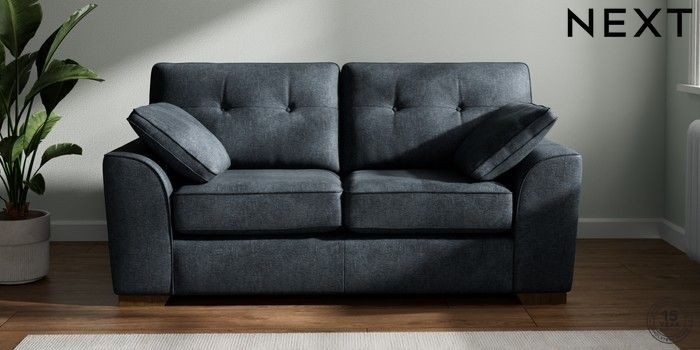 7.2.10 Stamford Buttoned Back 2 Seater Sofa Plush Chenille Slate Blue Large Square Angle - Mid | Made Click here to use our website with more accessibility support, for example screen readers