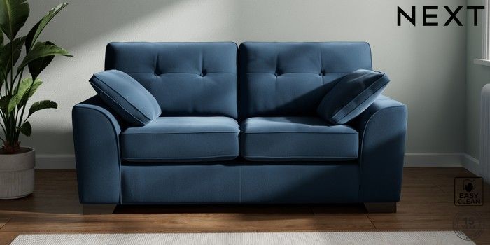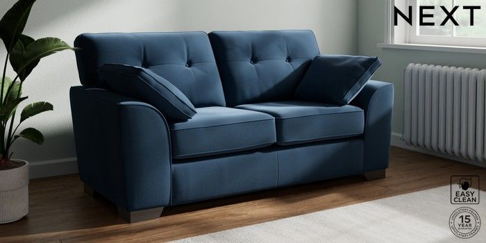 7.2.10 Stamford Buttoned Back 2 Seater Sofa Plush Velvet Easy Clean Airforce Blue Large Square Angle - Gunmetal | Made Click here to use our website with more accessibility support, for example screen readers