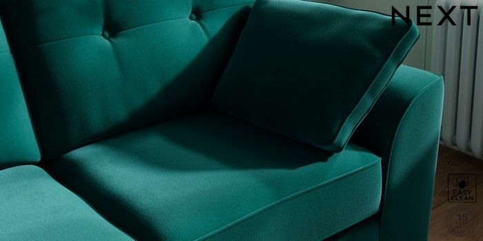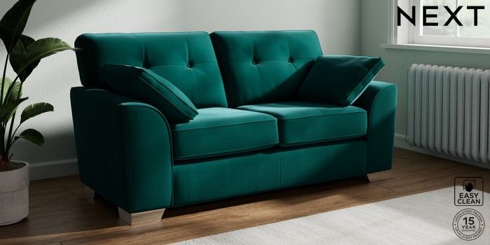 7.2.10 Stamford Buttoned Back 2 Seater Sofa Plush Velvet Easy Clean Juniper Green Large Square Angle - Chrome Metal | Made Click here to use our website with more accessibility support, for example screen readers