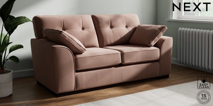 7.2.10 Stamford Buttoned Back 2 Seater Sofa Plush Velvet Easy Clean Mid Natural Large Square Angle - Dark | Made Click here to use our website with more accessibility support, for example screen readers