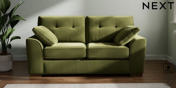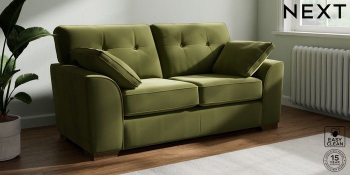 7.2.10 Stamford Buttoned Back 2 Seater Sofa Plush Velvet Easy Clean Mid Olive Green Large Square Angle - Mid | Made Click here to use our website with more accessibility support, for example screen readers