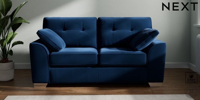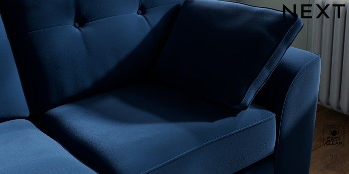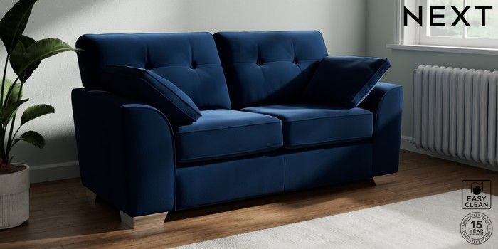 7.2.10 Stamford Buttoned Back 2 Seater Sofa Plush Velvet Easy Clean Navy Blue Large Square Angle - Chrome Metal | Made Click here to use our website with more accessibility support, for example screen readers