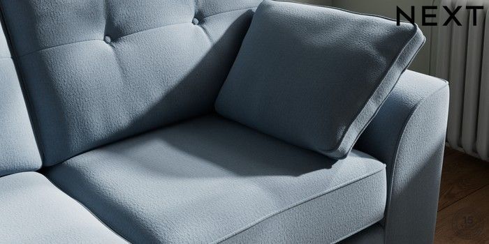 7.2.10 Stamford Buttoned Back 2 Seater Sofa Relaxed Linen Look Mid Blue Large Square Angle - Mid | Made Click here to use our website with more accessibility support, for example screen readers