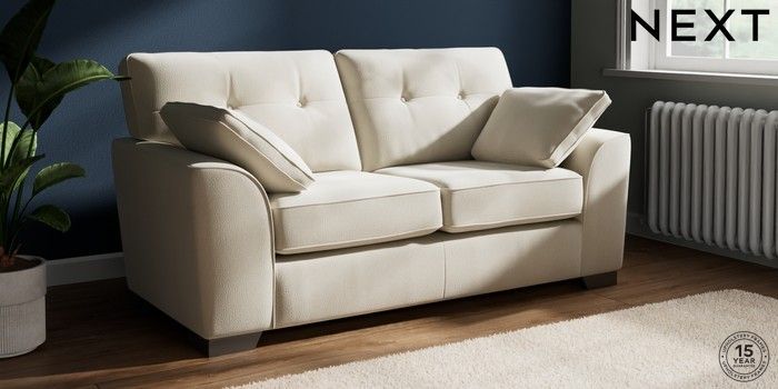 7.2.10 Stamford Buttoned Back 2 Seater Sofa Relaxed Linen Look Oyster Large Square Angle - Gunmetal | Made Click here to use our website with more accessibility support, for example screen readers