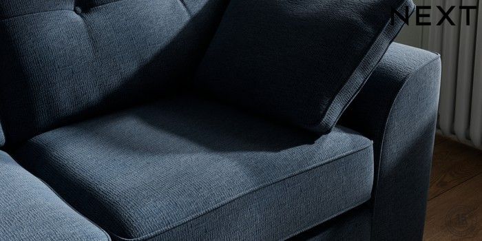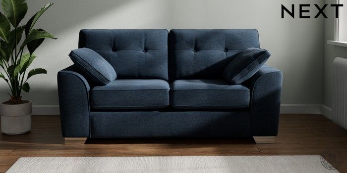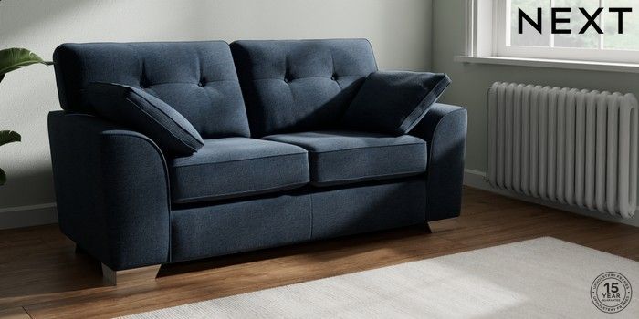 7.2.10 Stamford Buttoned Back 2 Seater Sofa Ripple Chenille Dark Blue Large Square Angle - Chrome Metal | Made Click here to use our website with more accessibility support, for example screen readers