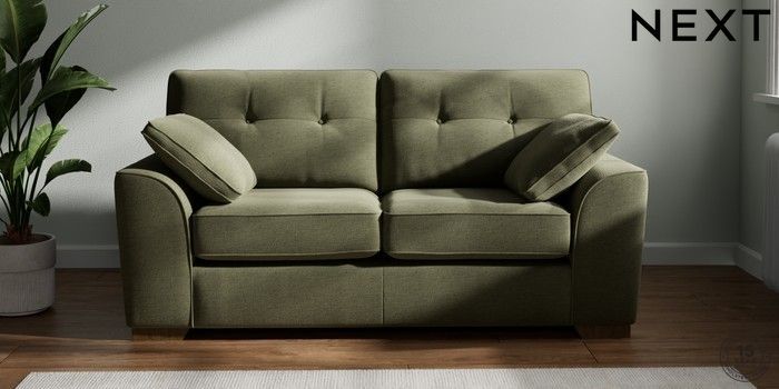 7.2.10 Stamford Buttoned Back 2 Seater Sofa Ripple Chenille Mid Moss Green Large Square Angle - Mid | Made Click here to use our website with more accessibility support, for example screen readers