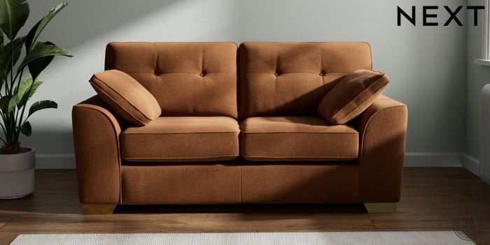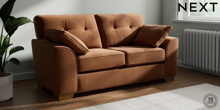 7.2.10 Stamford Buttoned Back 2 Seater Sofa Ripple Chenille Mid Rust Brown Large Square Angle - Brushed Brass | Made Click here to use our website with more accessibility support, for example screen readers