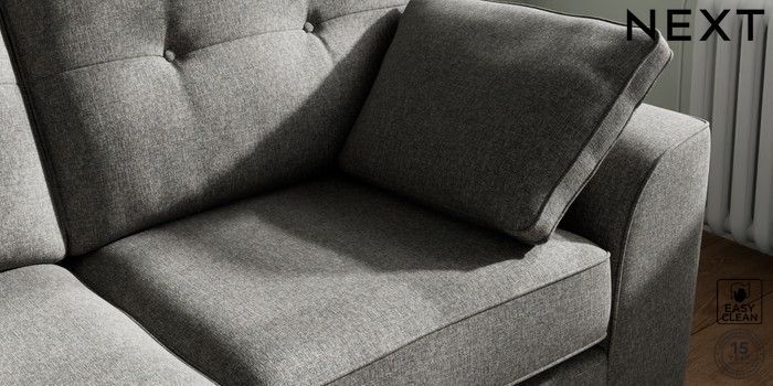 7.2.10 Stamford Buttoned Back 2 Seater Sofa Tweedy Blend Easy Clean Dark Grey Large Square Angle - Brushed Brass | Made Click here to use our website with more accessibility support, for example screen readers