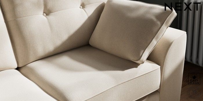 7.2.10 Stamford Buttoned Back 2 Seater Sofa Tweedy Blend Easy Clean Oyster Large Square Angle - Gunmetal | Made Click here to use our website with more accessibility support, for example screen readers