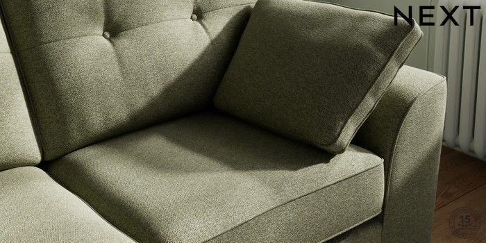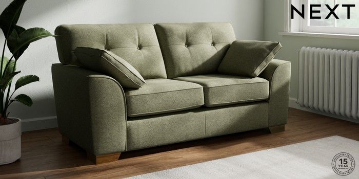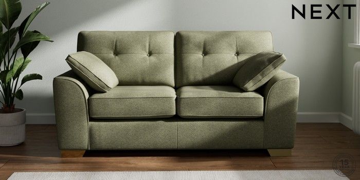 7.2.10 Stamford Buttoned Back 2 Seater Sofa Tweedy Chenille Mid Moss Green Large Square Angle - Brushed Brass | Made Click here to use our website with more accessibility support, for example screen readers