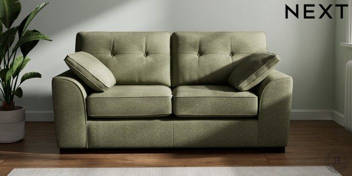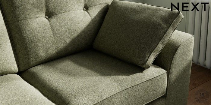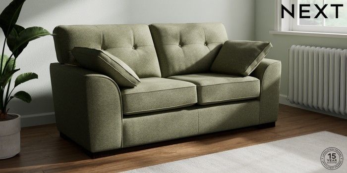 7.2.10 Stamford Buttoned Back 2 Seater Sofa Tweedy Chenille Mid Moss Green Large Square Angle - Dark | Made Click here to use our website with more accessibility support, for example screen readers