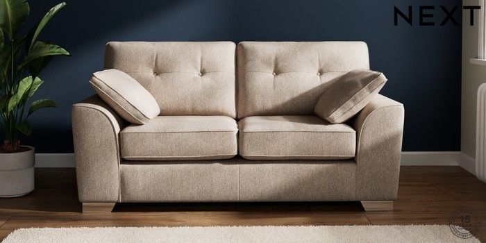 7.2.10 Stamford Buttoned Back 2 Seater Sofa Tweedy Chenille Mid Natural Large Square Angle - Chrome Metal | Made Click here to use our website with more accessibility support, for example screen readers