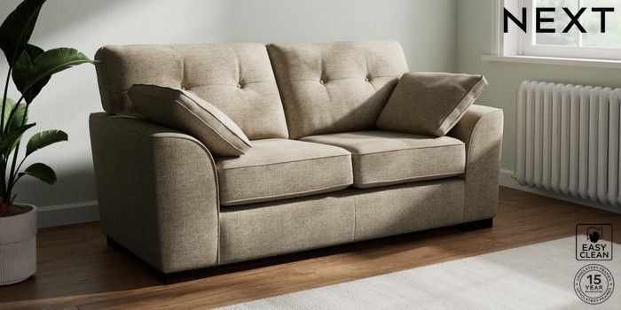 7.2.10 Stamford Buttoned Back 2 Seater Sofa Woven Chenille Easy Clean Mid Natural Large Square Angle - Dark | Made Click here to use our website with more accessibility support, for example screen readers