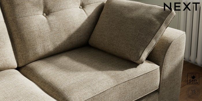 7.2.10 Stamford Buttoned Back 2 Seater Sofa Woven Chenille Easy Clean Mid Natural Large Square Angle - Gunmetal | Made Click here to use our website with more accessibility support, for example screen readers