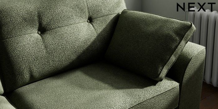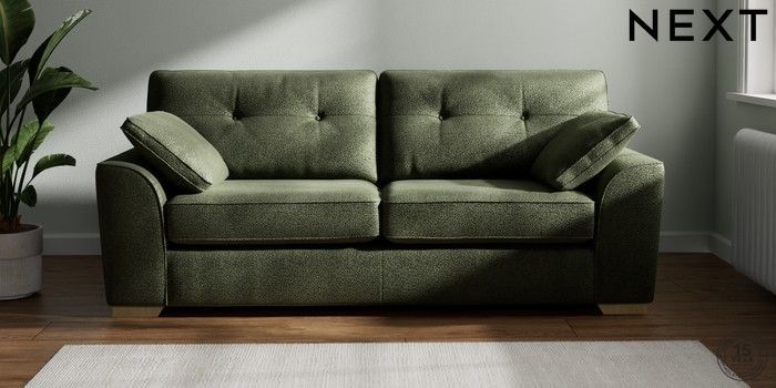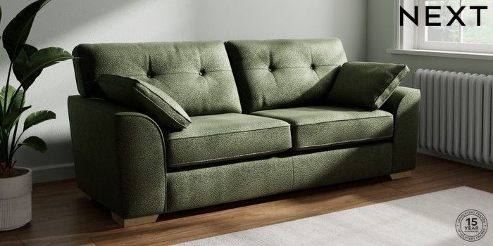 7.2.10 Stamford Buttoned Back 3 Seater Sofa Boucle Chenille Dark Moss Green Large Square Angle - Light | Made Click here to use our website with more accessibility support, for example screen readers