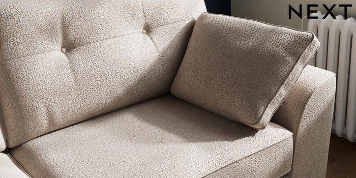 7.2.10 Stamford Buttoned Back 3 Seater Sofa Boucle Chenille Light Natural Large Square Angle - Gunmetal | Made Click here to use our website with more accessibility support, for example screen readers