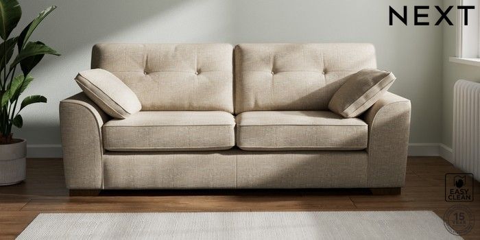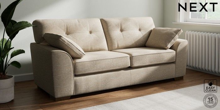 7.2.10 Stamford Buttoned Back 3 Seater Sofa Boucle Weave Easy Clean Dark Natural Large Square Angle - Mid | Made Click here to use our website with more accessibility support, for example screen readers