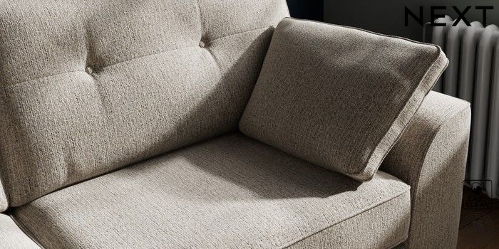 7.2.10 Stamford Buttoned Back 3 Seater Sofa Chunky Boucle Easy Clean Dove Large Square Angle - Chrome Metal | Made Click here to use our website with more accessibility support, for example screen readers