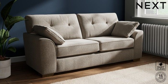 7.2.10 Stamford Buttoned Back 3 Seater Sofa Chunky Boucle Easy Clean Dove Large Square Angle - Mid | Made Click here to use our website with more accessibility support, for example screen readers