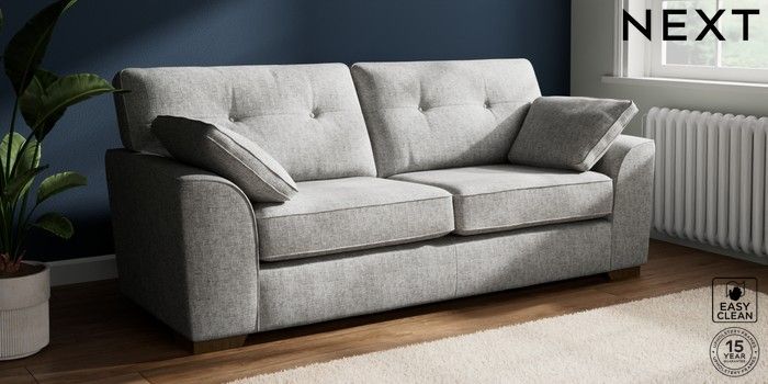 7.2.10 Stamford Buttoned Back 3 Seater Sofa Chunky Boucle Easy Clean Light Grey Large Square Angle - Mid | Made Click here to use our website with more accessibility support, for example screen readers