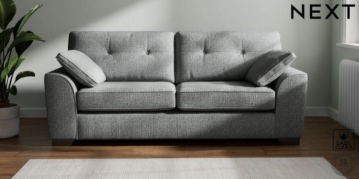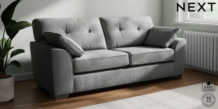 7.2.10 Stamford Buttoned Back 3 Seater Sofa Chunky Boucle Easy Clean Mid Grey Large Square Angle - Gunmetal | Made Click here to use our website with more accessibility support, for example screen readers