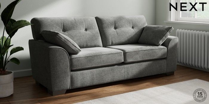 7.2.10 Stamford Buttoned Back 3 Seater Sofa Chunky Chenille Dark Grey Large Square Angle - Gunmetal | Made Click here to use our website with more accessibility support, for example screen readers