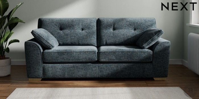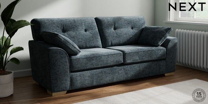 7.2.10 Stamford Buttoned Back 3 Seater Sofa Chunky Chenille Dark Navy Blue Large Square Angle - Light | Made Click here to use our website with more accessibility support, for example screen readers