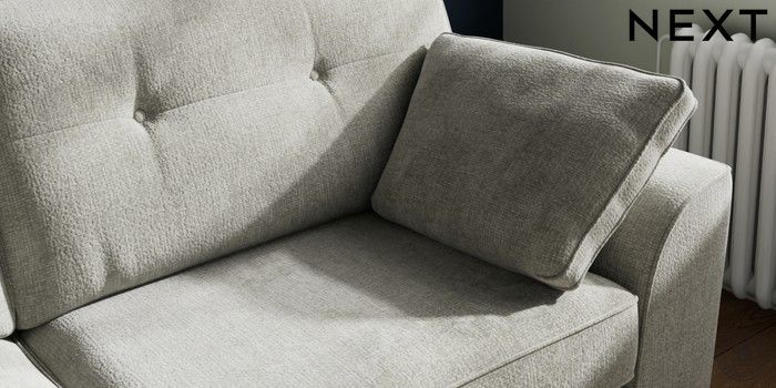 7.2.10 Stamford Buttoned Back 3 Seater Sofa Chunky Chenille Light Grey Large Square Angle - Mid | Made Click here to use our website with more accessibility support, for example screen readers