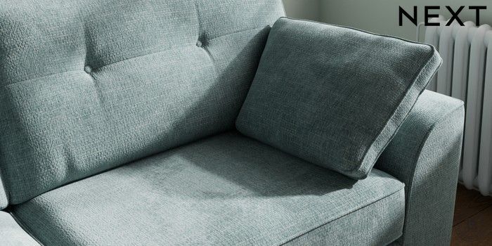 7.2.10 Stamford Buttoned Back 3 Seater Sofa Chunky Chenille Light Teal Green Large Square Angle - Chrome Metal | Made Click here to use our website with more accessibility support, for example screen readers