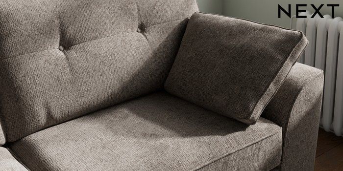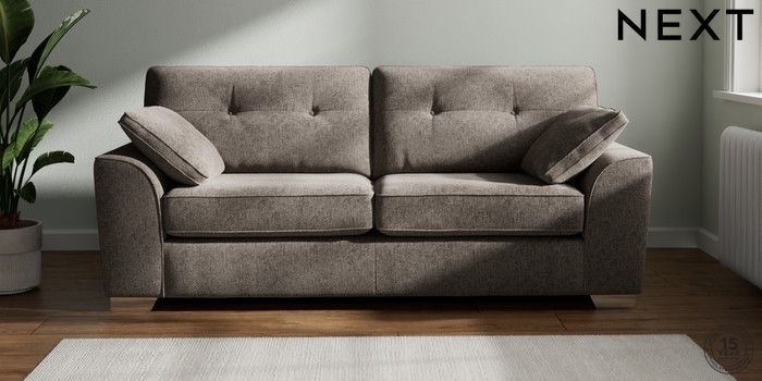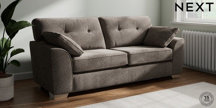 7.2.10 Stamford Buttoned Back 3 Seater Sofa Chunky Chenille Mink Brown Large Square Angle - Chrome Metal | Made Click here to use our website with more accessibility support, for example screen readers