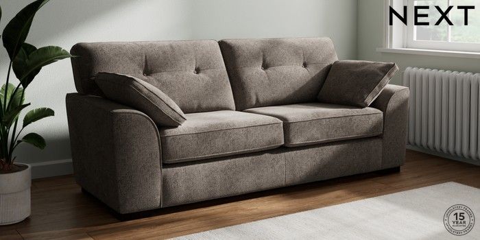 7.2.10 Stamford Buttoned Back 3 Seater Sofa Chunky Chenille Mink Brown Large Square Angle - Dark | Made Click here to use our website with more accessibility support, for example screen readers