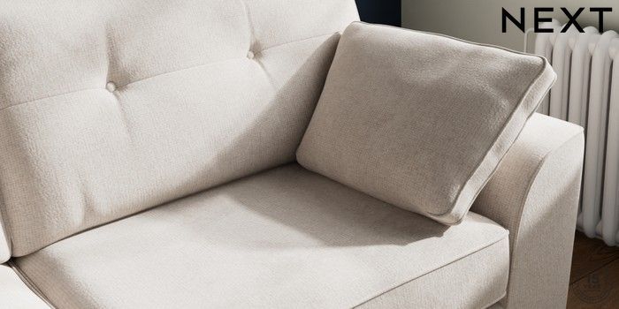 7.2.10 Stamford Buttoned Back 3 Seater Sofa Chunky Chenille Oyster Large Square Angle - Chrome Metal | Made Click here to use our website with more accessibility support, for example screen readers