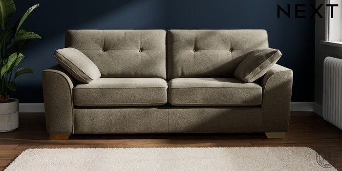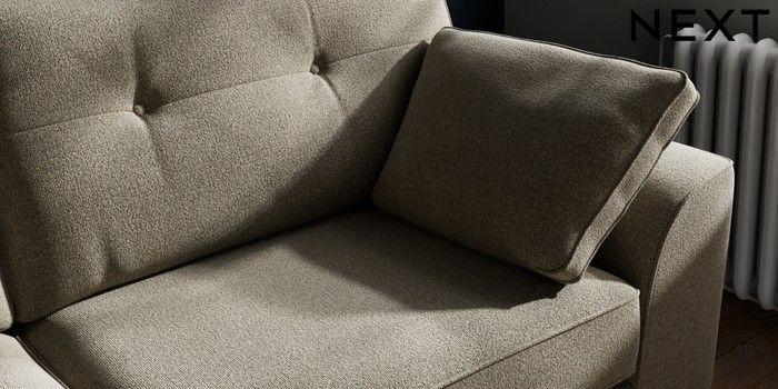 7.2.10 Stamford Buttoned Back 3 Seater Sofa Chunky Marl Light Olive Green Large Square Angle - Brushed Brass | Made Click here to use our website with more accessibility support, for example screen readers