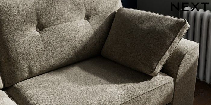 7.2.10 Stamford Buttoned Back 3 Seater Sofa Chunky Marl Light Olive Green Large Square Angle - Chrome Metal | Made Click here to use our website with more accessibility support, for example screen readers