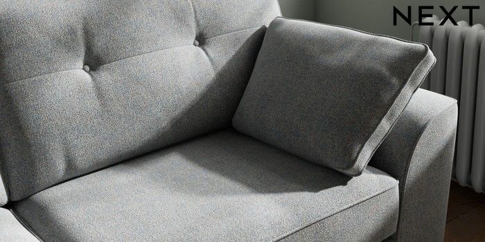 7.2.10 Stamford Buttoned Back 3 Seater Sofa Chunky Marl Mid Grey Large Square Angle - Chrome Metal | Made Click here to use our website with more accessibility support, for example screen readers
