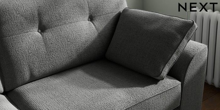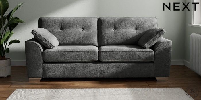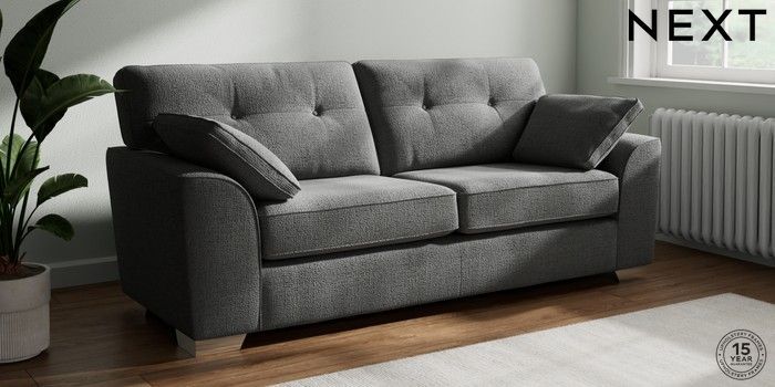 7.2.10 Stamford Buttoned Back 3 Seater Sofa Chunky Texture Dark Grey Large Square Angle - Chrome Metal | Made Click here to use our website with more accessibility support, for example screen readers