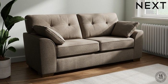 7.2.10 Stamford Buttoned Back 3 Seater Sofa Chunky Weave Dark Natural Large Square Angle - Mid | Made Click here to use our website with more accessibility support, for example screen readers