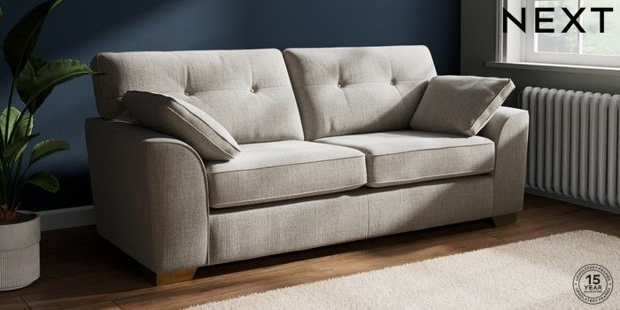 7.2.10 Stamford Buttoned Back 3 Seater Sofa Chunky Weave Dove Grey Large Square Angle - Brushed Brass | Made Click here to use our website with more accessibility support, for example screen readers