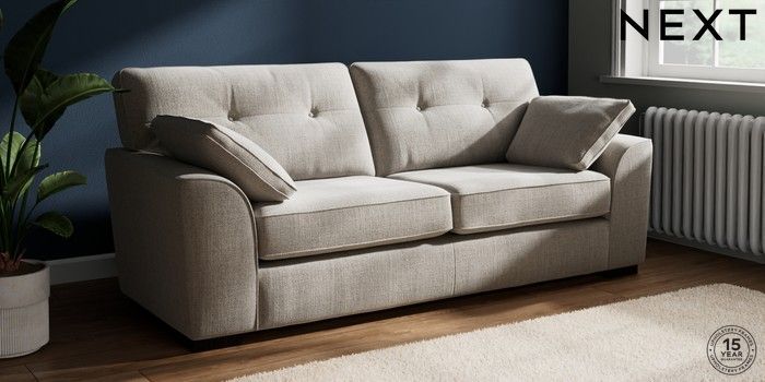 7.2.10 Stamford Buttoned Back 3 Seater Sofa Chunky Weave Dove Grey Large Square Angle - Dark | Made Click here to use our website with more accessibility support, for example screen readers