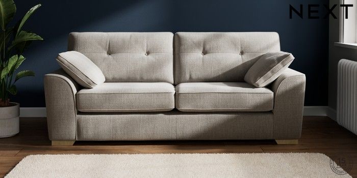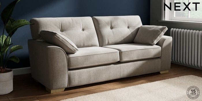 7.2.10 Stamford Buttoned Back 3 Seater Sofa Chunky Weave Dove Grey Large Square Angle - Light | Made Click here to use our website with more accessibility support, for example screen readers