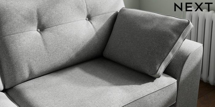 7.2.10 Stamford Buttoned Back 3 Seater Sofa Chunky Weave Mid Grey Large Square Angle - Chrome Metal | Made Click here to use our website with more accessibility support, for example screen readers
