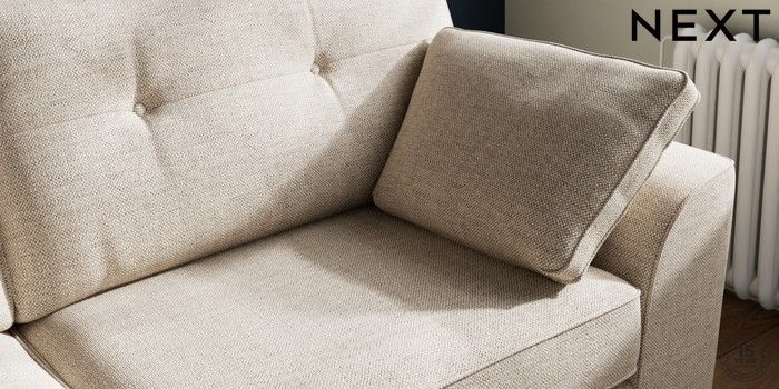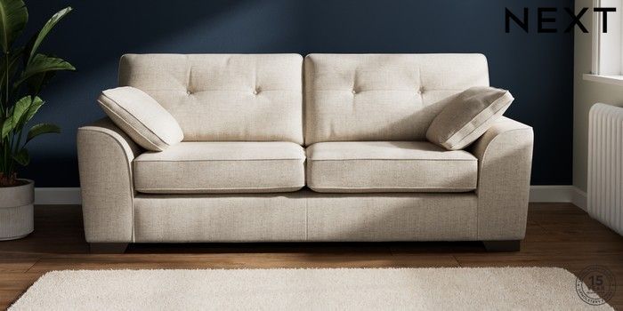 7.2.10 Stamford Buttoned Back 3 Seater Sofa Chunky Weave Mid Natural Large Square Angle - Gunmetal | Made Click here to use our website with more accessibility support, for example screen readers