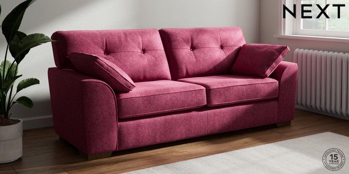 7.2.10 Stamford Buttoned Back 3 Seater Sofa Cotswold Chenille Dark Raspberry Pink Large Square Angle - Mid | Made Click here to use our website with more accessibility support, for example screen readers