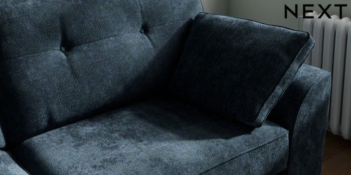 7.2.10 Stamford Buttoned Back 3 Seater Sofa Distressed Velour Midnight Blue Large Square Angle - Chrome Metal | Made Click here to use our website with more accessibility support, for example screen readers