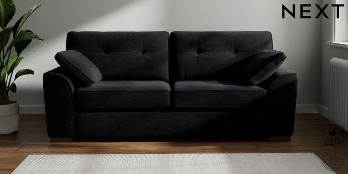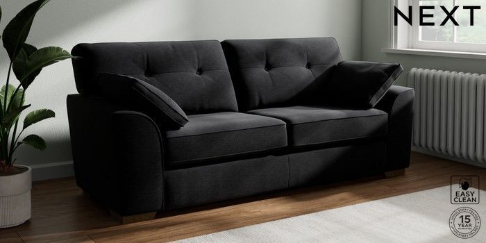 7.2.10 Stamford Buttoned Back 3 Seater Sofa Fine Chenille Easy Clean Black Large Square Angle - Mid | Made Click here to use our website with more accessibility support, for example screen readers