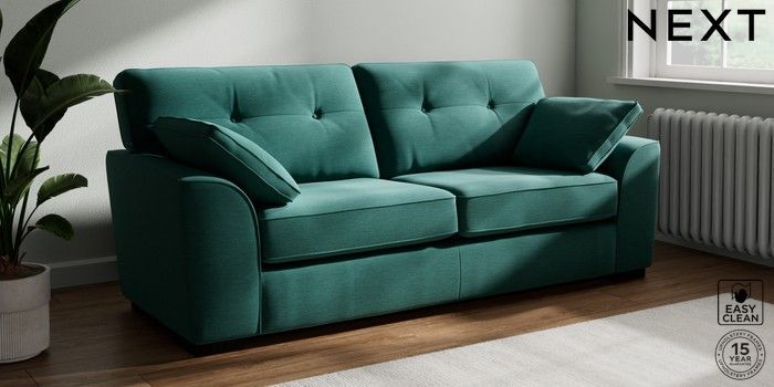 7.2.10 Stamford Buttoned Back 3 Seater Sofa Fine Chenille Easy Clean Dark Juniper Green Large Square Angle - Dark | Made Click here to use our website with more accessibility support, for example screen readers