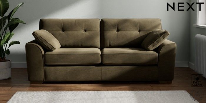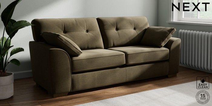 7.2.10 Stamford Buttoned Back 3 Seater Sofa Fine Chenille Easy Clean Dark Moss Green Large Square Angle - Mid | Made Click here to use our website with more accessibility support, for example screen readers